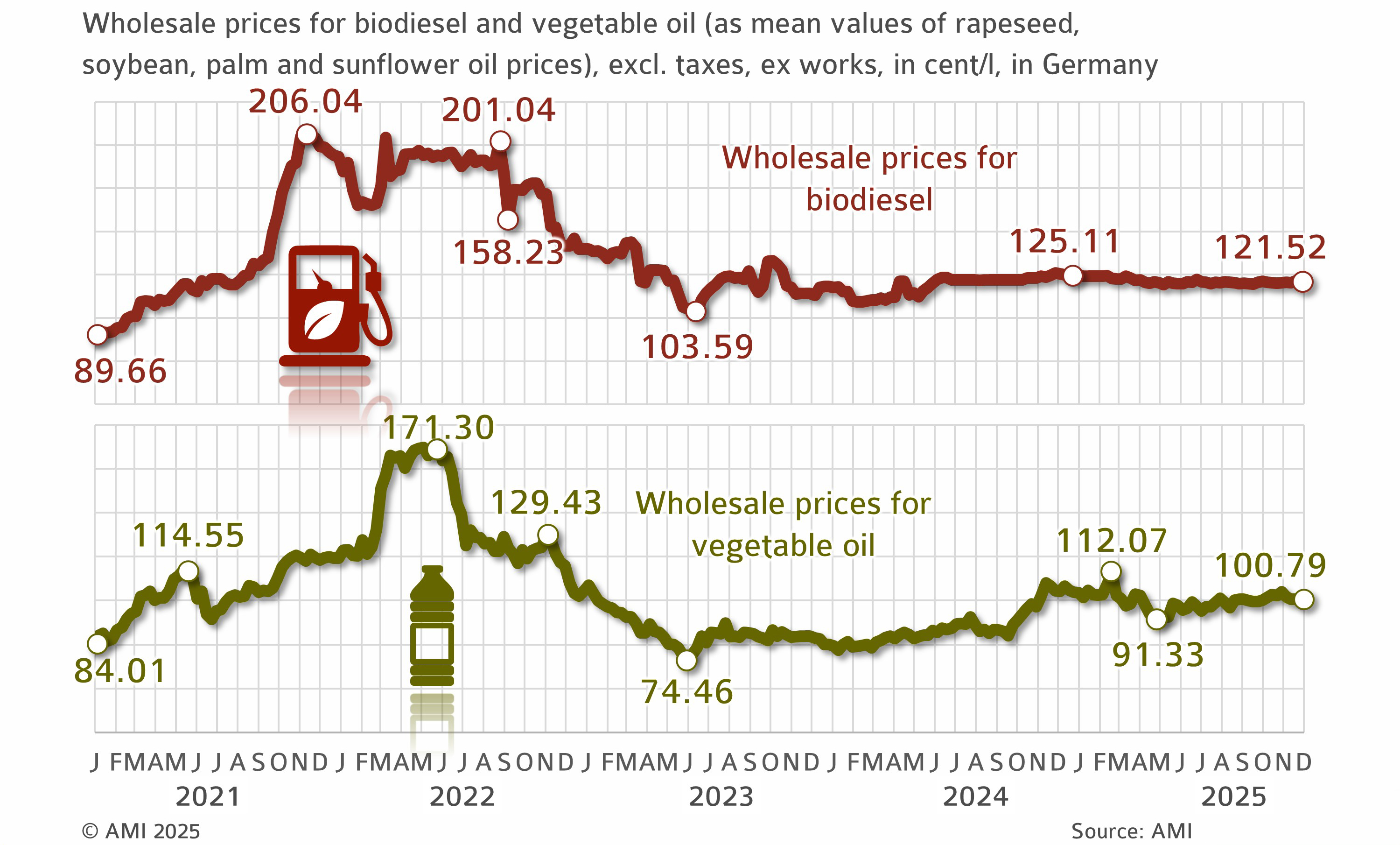 Price comparison of vegetable oil und biodiesel